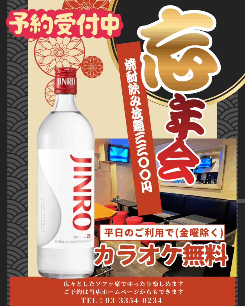 平日であればカラオケ無料、焼酎2時間飲み放題でおひとり様3,300円と