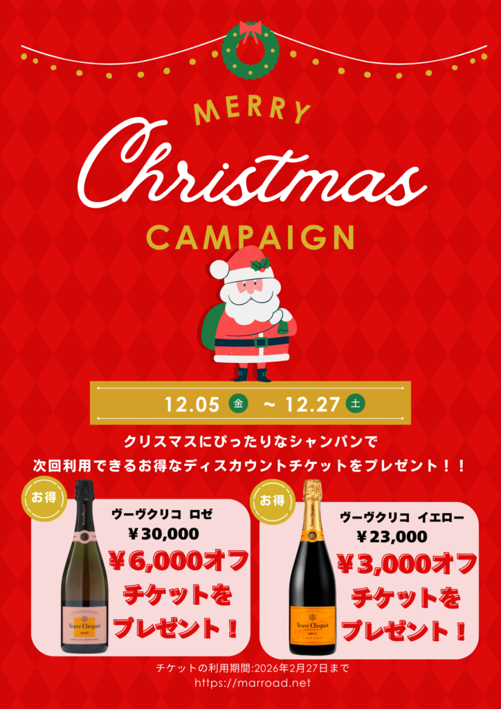 マロードではクリスマス期間限定でヴーヴクリコがお得に楽しめる